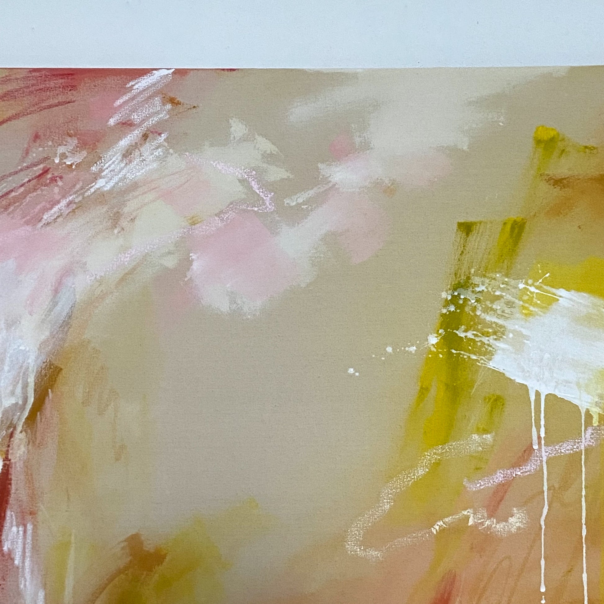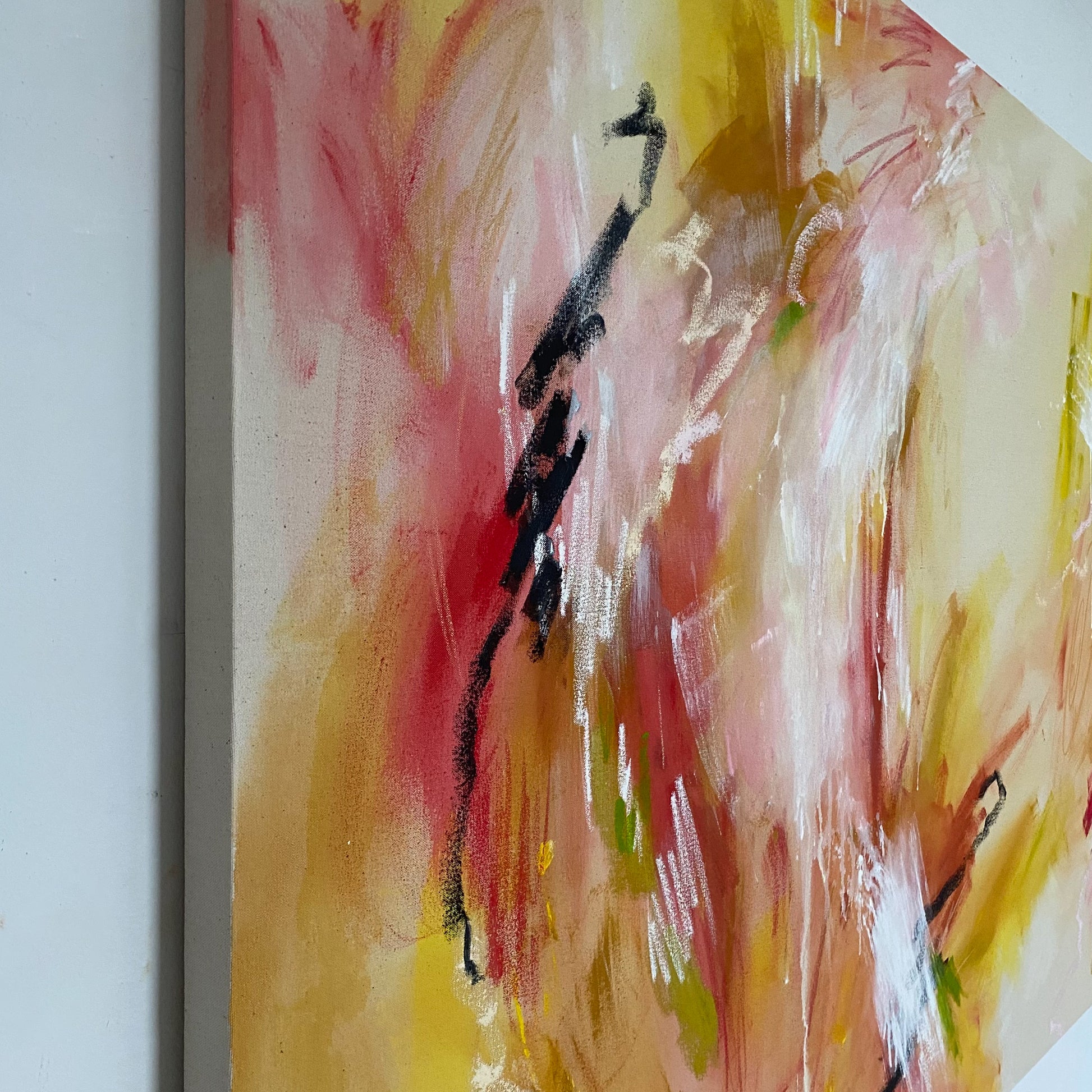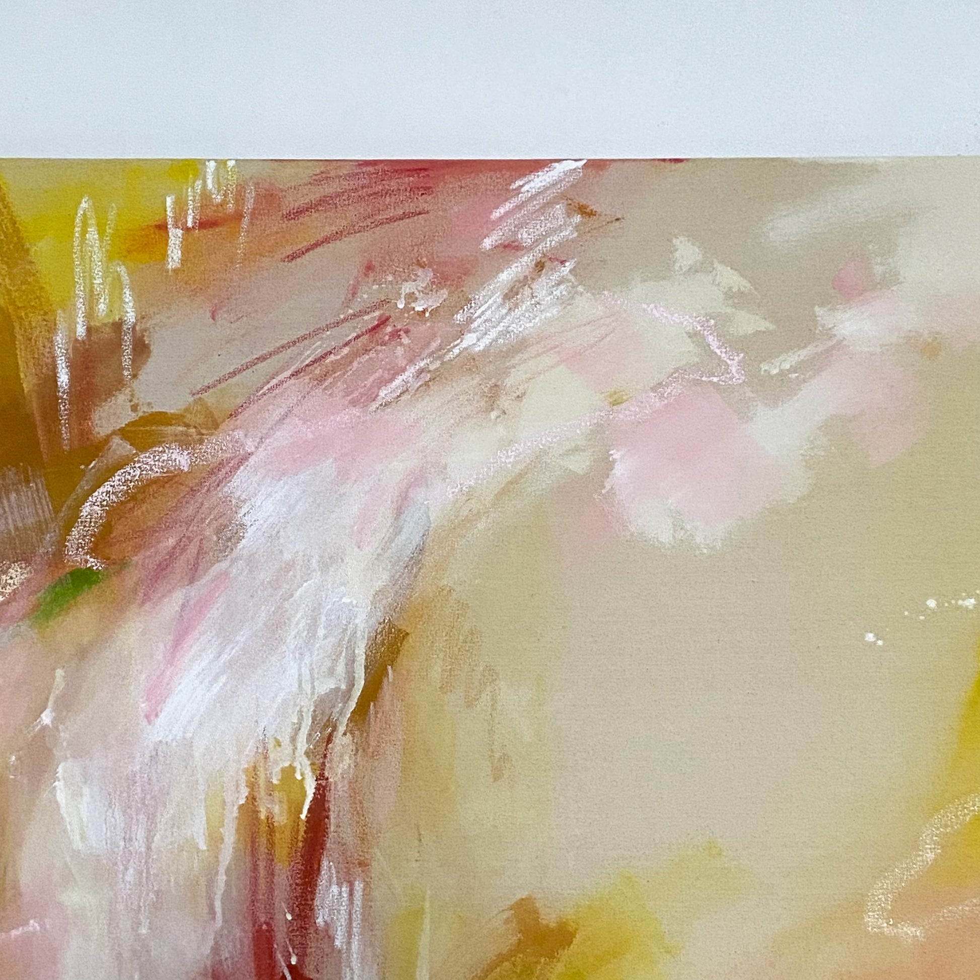 acrylic, oil stick, oil pastel, soft pastel, and pencil on cotton canvas