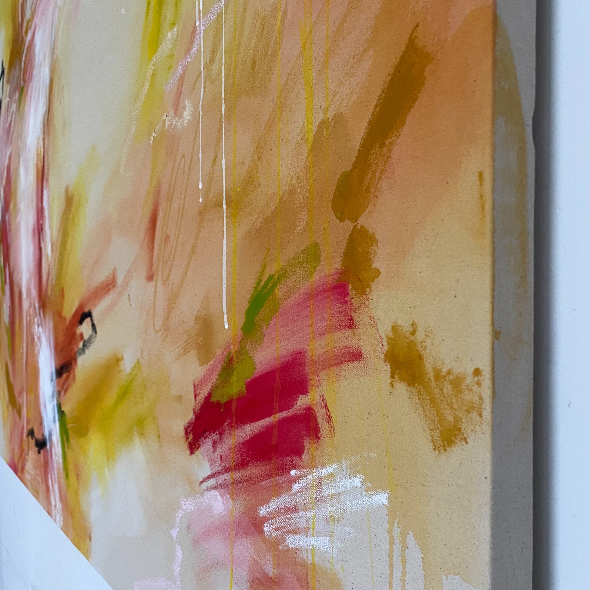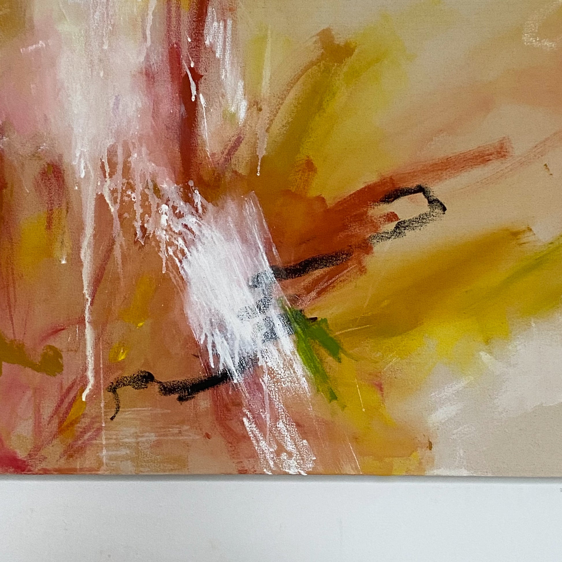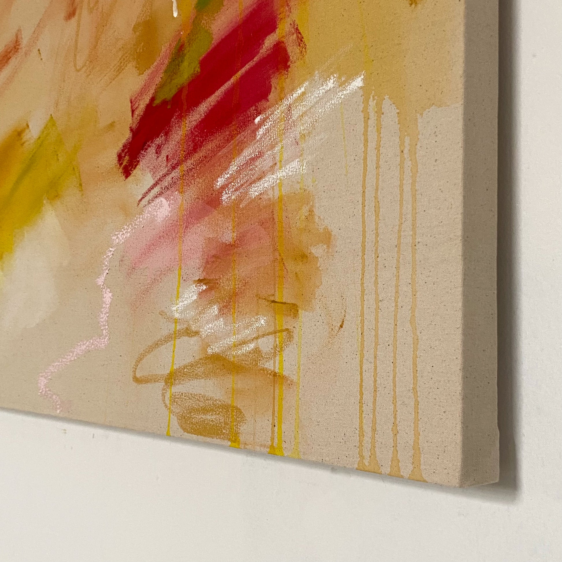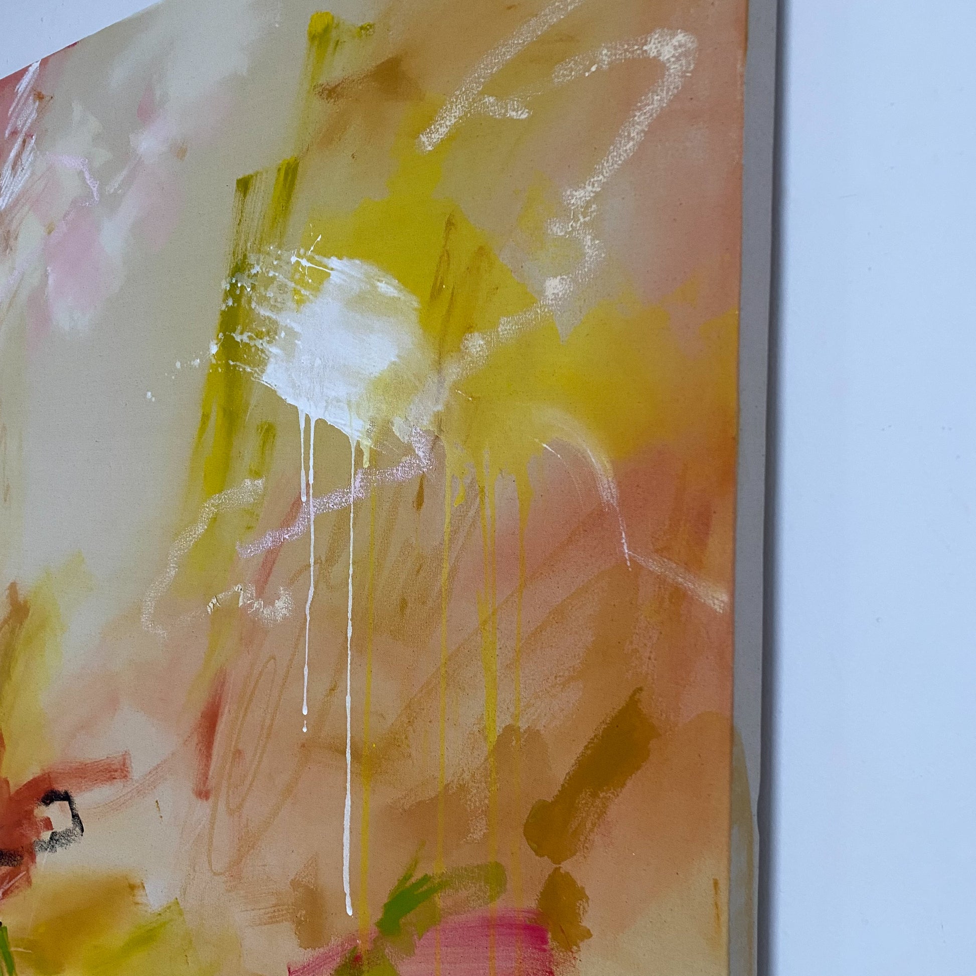 acrylic, oil stick, oil pastel, soft pastel, and pencil on cotton canvas