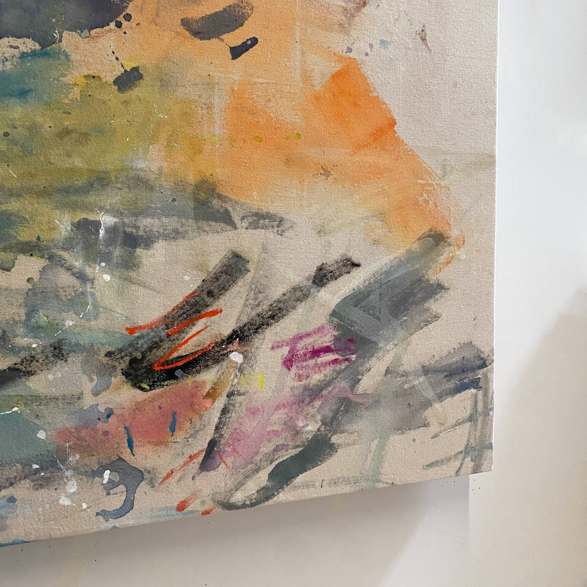 the scraps series was born out of both the desire to be more sustainable in my practice, as well as a way to leave it up to chance and give up control, or most of it. what paint is left on my palette is never discarded, it is applied randomly to my “drop cloth.” And, over time, what remains is curated onto a set of stretchers or framed behind glass. A reminder that we can find the beauty in uncertainty, chaos, waste, and what would have been dismissed or discarded. my favorite collection to date, and one that will continue to grow and evolve.