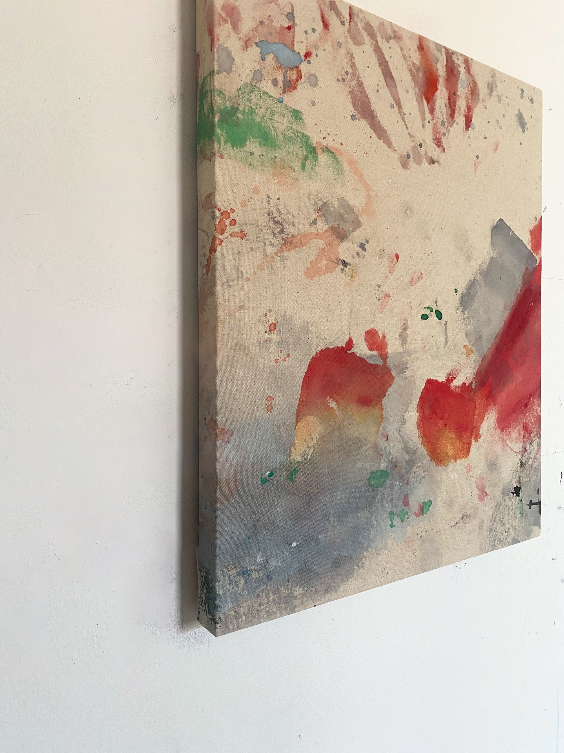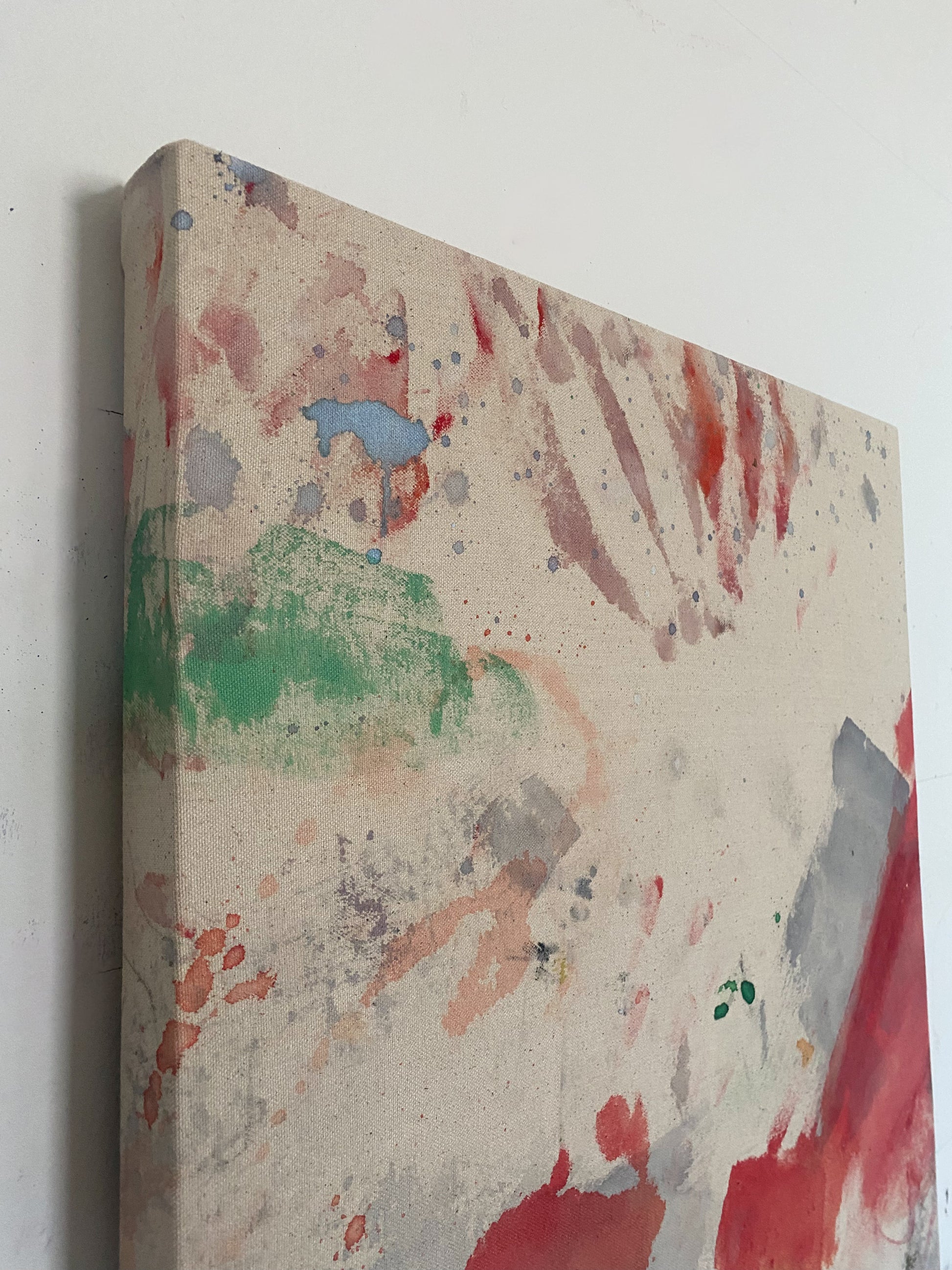 the scraps series was born out of both the desire to be more sustainable in my practice, as well as a way to leave it up to chance and give up control, or most of it. what paint is left on my palette is never discarded, it is applied randomly to my “drop cloth.” And, over time, what remains is curated onto a set of stretchers or framed behind glass. A reminder that we can find the beauty in uncertainty, chaos, waste, and what would have been dismissed or discarded. my favorite collection to date, and one that will continue to grow and evolve.